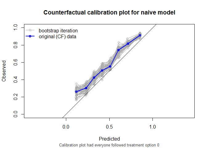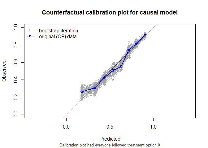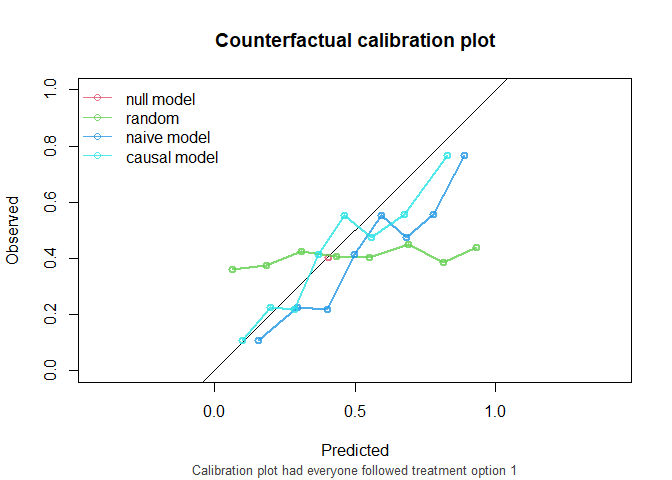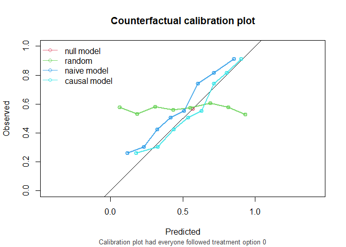 One option to validate the models would be to leave the data as it is, and compute the performance metrics on this observed dataset, where some patients were treated and others were not. This package has a function that can do this, but it is not recommended to use it. For demonstration purposes, we use it here nonetheless.